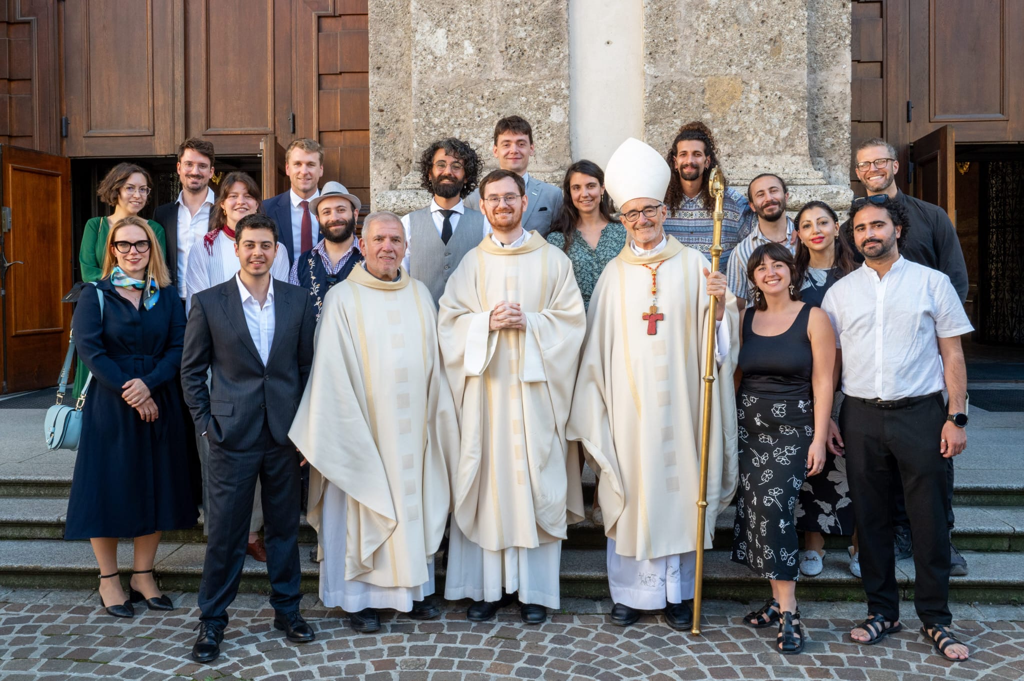 It was a very « Gerry » weekend with a mix of things that only Gerry’s life could bring together, a convergence of universes and peoples and languages and places. After leaving his regency ministry in Homs for Innsbruck and theology studies, the time finally came for Gerry’s priestly ordination at the Jesuit church in Innsbruck, surrounded by friends and family from all over Europe and, of course, Syria. Following the ordination itself – presided over by Michael Cardinal Czerny SJ – this lively diversity was on full display in the long line of guests waiting for his blessing after his first Mass – even the Provincial had to wait until another time to get his blessing.