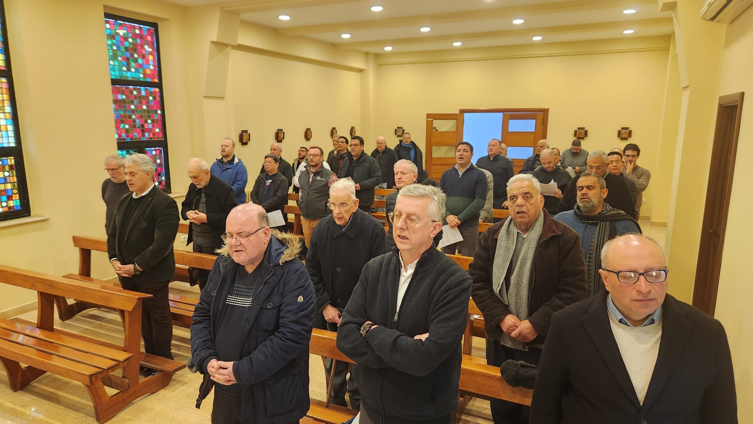 بعد ذلك، توزّعنا إلى أربع مجموعات لغوية ناقشنا فيها السؤالين التاليّين: 1- في الأزمة الحالية التي نمرّ بها، ما هو الصراع الداخلي والروحي الذي نعيشه؟ 2- أمام هذه الأزمة، أيّ مسارٍ في التفكير والعمل يمكننا أن نحدّده معًا ؟